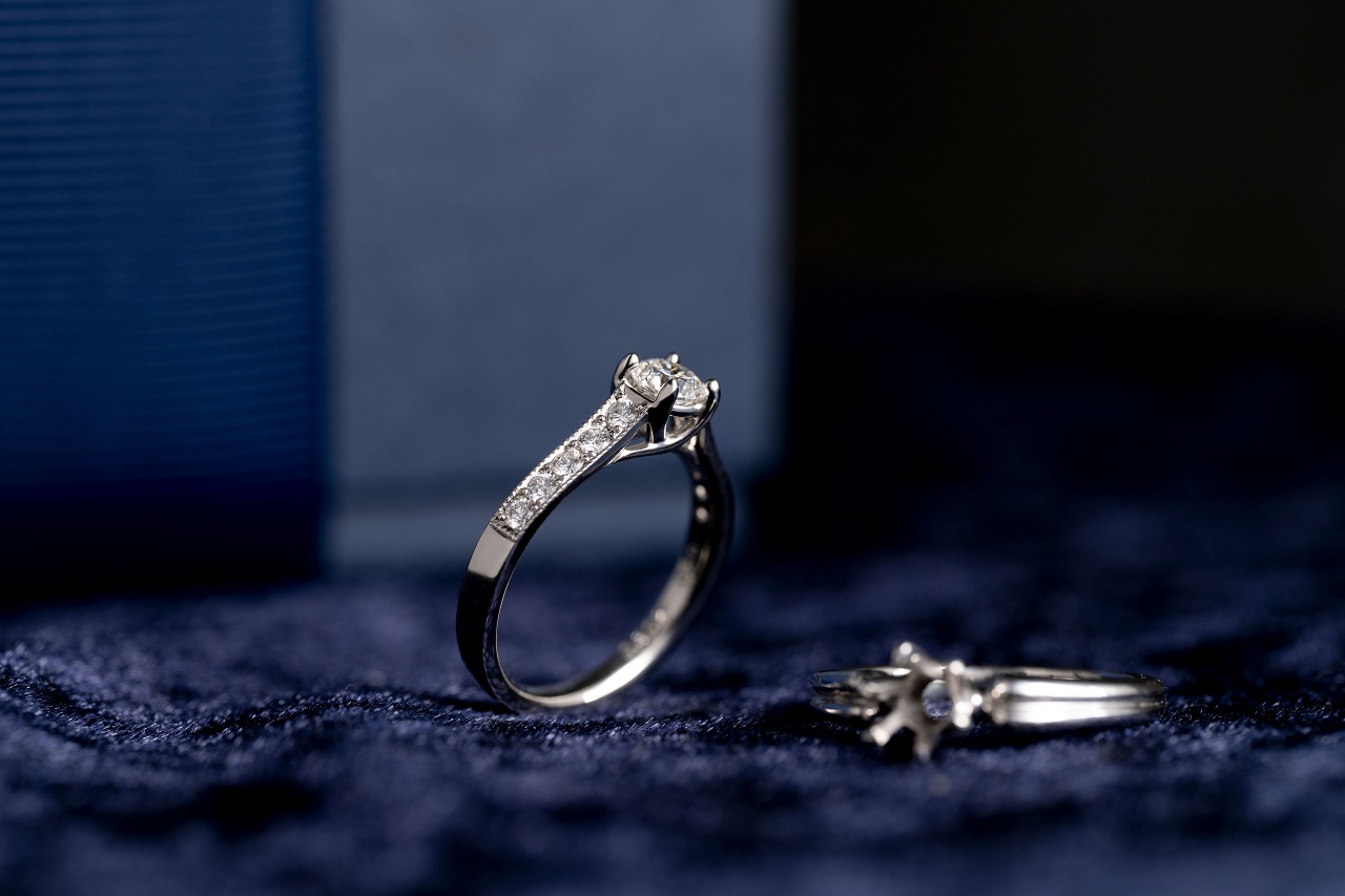 サプライズプロポーズにダイヤモンドを贈り、リングの枠は後ほどお二人の好みに合わせたデザインでお作りします。